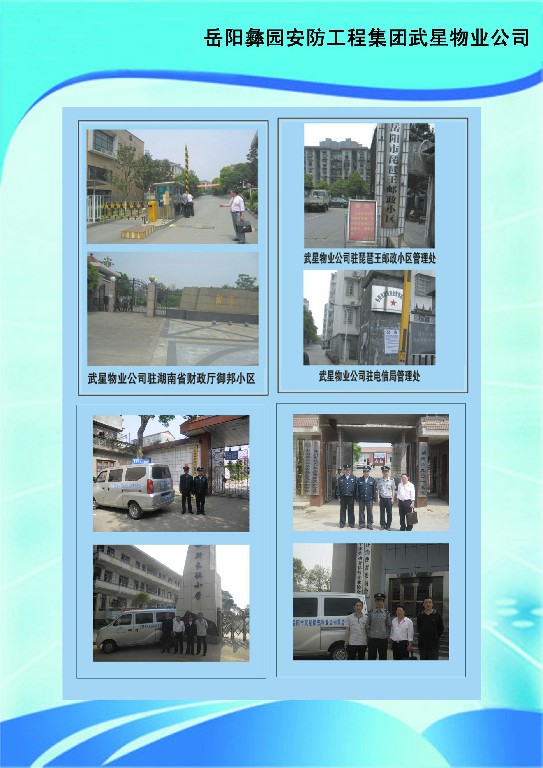 岳陽武星物業(yè)管理有限公司繼岳陽市武星保安公司于2012年2月成立,武星保安公司是經(jīng)省公安廳批準(zhǔn)成立的民營(yíng)保安公司,為滿足廣大客戶的迫切要求,公司能為客戶提供保安、物業(yè)整體服務(wù)。武星物業(yè)公司技術(shù)力量雄厚,有電梯維修工程師、園林綠化師、水電安裝工程師、消防等專業(yè)技術(shù)人才。為了更好地服務(wù)社會(huì)、培育特種人才,公司與岳陽市巴陵職業(yè)技術(shù)學(xué)校聯(lián)合辦學(xué),開設(shè)了保鏢保安武術(shù)散打班、物業(yè)管理班、園林綠化技術(shù)班、水電維修班、禮儀班,現(xiàn)有專業(yè)學(xué)員幾百名。公司為各黨政機(jī)關(guān)、社會(huì)團(tuán)體、廠礦企事業(yè)單位、金融機(jī)構(gòu)、房地產(chǎn)開發(fā)商居民住宅、賓館、學(xué)校、娛樂場(chǎng)所等提供人力資源和技術(shù)防范服務(wù)。目前公司有幾十家大客戶,公司優(yōu)質(zhì)的服務(wù)得到了客戶的好評(píng)?,F(xiàn)經(jīng)公安廳市公安局批準(zhǔn)成立了保衛(wèi)科、督查應(yīng)急大隊(duì),為客戶不定時(shí)的服務(wù)和回訪,公司有一批業(yè)務(wù)精、能力強(qiáng)的管理人才,為客戶提供高質(zhì)量的服務(wù)。武星保安物業(yè),保您家安樂業(yè)。